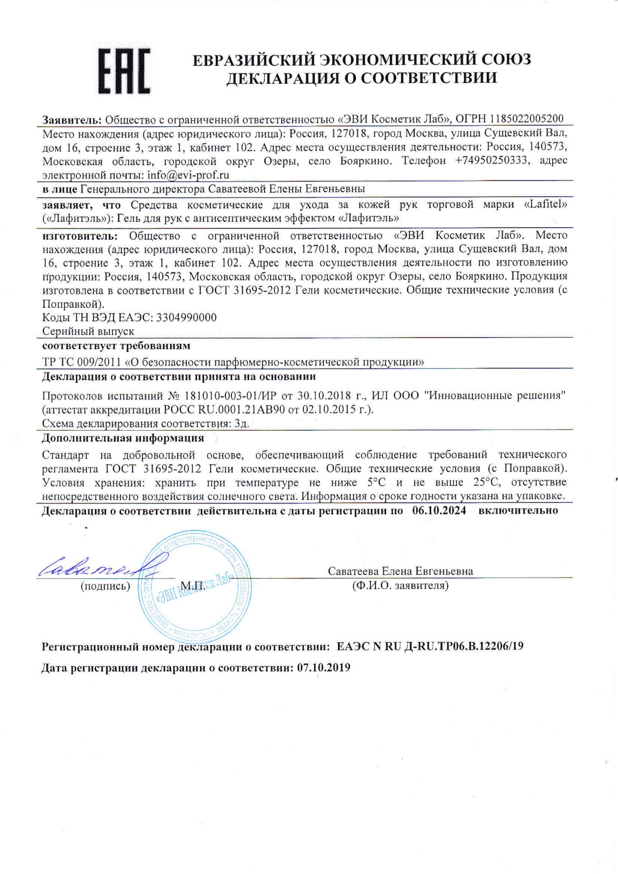 Антисептический гель состав: