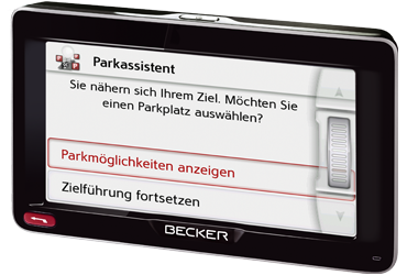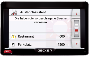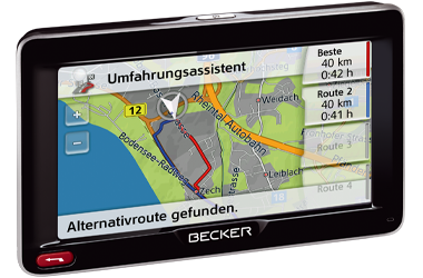 Вы получаете дополнительные преимущества от интеллектуальных сервисных функций, предлагаемых Becker SituationScan. Одна из таких функций - это помощник при составлении маршрута для объезда препятствия Detour Assistant. Нажатием одной кнопки он позволяет вам избегать различных непредвиденных задержек в пути, незамедлительно сообщая о препятствиях.