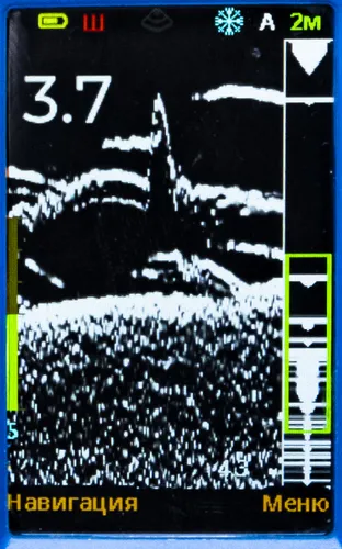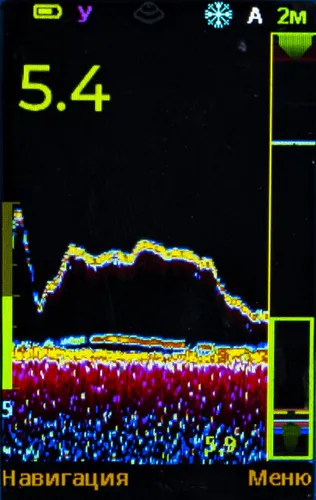 • Настройка "Зум" удобна и интересна на глубинах от 5 м и более для того, чтобы более точно и во всех красках увидеть игру приманки и реакцию рыбы на нее.