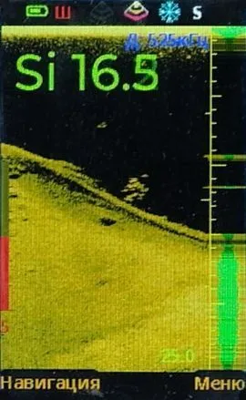 • Измерение глубины. Глубину эхолот Практик 8 DUO измеряет и показывает независимо от настроек и от того, что на экране.