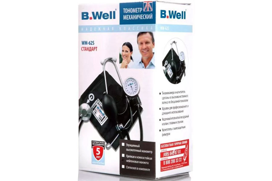 Прибор Би Велл - механический, а это значит, что исключены проблемы, связанные с заменой батареек или поиском розетки. В тонометре отсутствуют электронные компоненты, которые могут дать сбой.